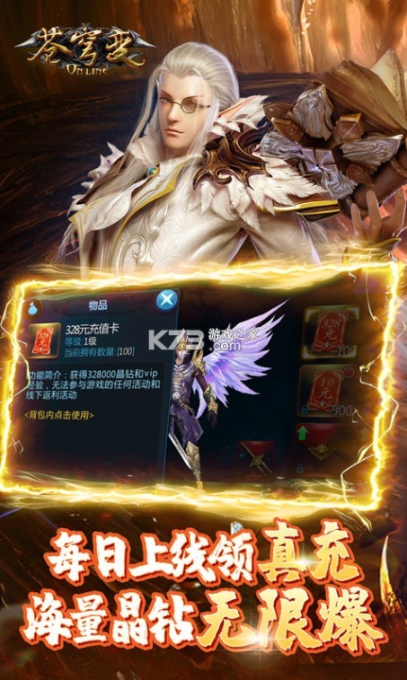 ★新增野外BOSS、世界BOSS无限爆充值卡,最高可爆328元充值卡,晶钻道具任意交易,自由再升级!