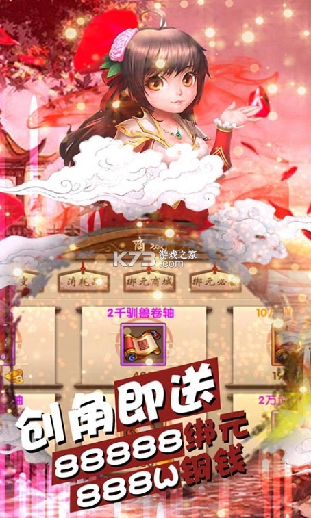 新手礼包:绑元*5000、强化石*100、翎羽*30
