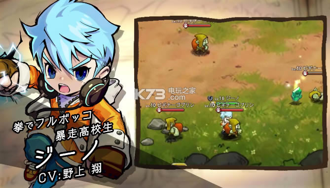 玩家将操作元气满满的可爱角色们在这片广大的土地上尽情冒险!故事讲述了从异世界被召唤而来的暴走高中生「吉诺(ジーノ)」与旅行途中遇到的鬼畜啦啦队长「维琪(ヴィッキー)」共同解决以「命运之书」为中心引发的种种事件。游戏中搭载了自动操作系统,玩家可以解放双手,欣赏如同战斗漫画般的爽快战斗画面。而偏好操作感的玩家更可以解除自动模式,使用各种强大的技能来战胜敌人吧!在游戏中搭载了聊天功能,除了文字交流外,还可以使用游戏内置的可爱贴图,玩家可以在这里结识新的好友,与朋友们一起挑战任务和强敌吧!