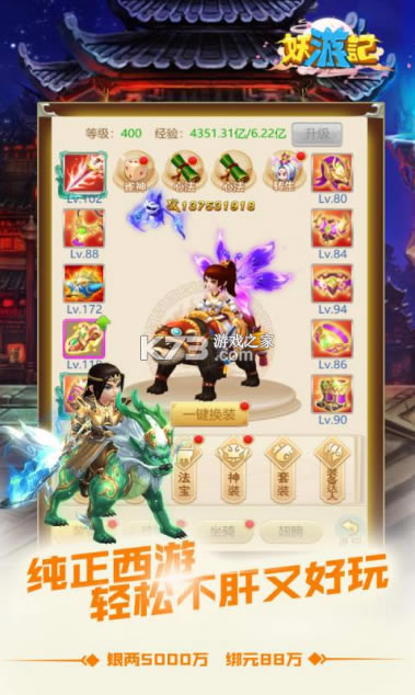 《妖游记-定制版》新版西游回合挂机游戏,精妙绝伦的美术让战斗场面栩栩如生,逼真的场景和人物,能清晰看到人物、伙伴的细微动作。纯正西游,轻松不肝又好玩,游戏拥有多种副本供你挑战:个人boss,世界boss,大闹天宫,段位赛等,你还在等什么,心动吗?快来下载体验这个萌萌哒的游戏吧!