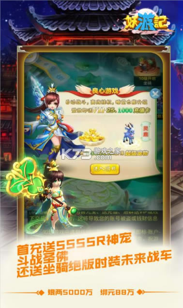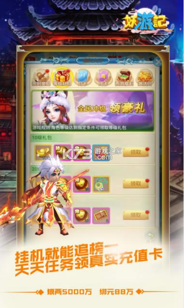 ★所有档位充值都可获得真实充值卡!上线赠送1000元充值卡,5000万银两!总获得超百万元宝!!真真正正的福利!