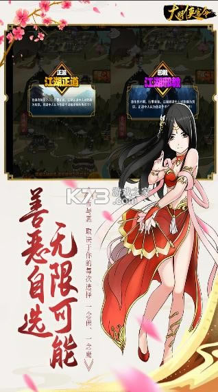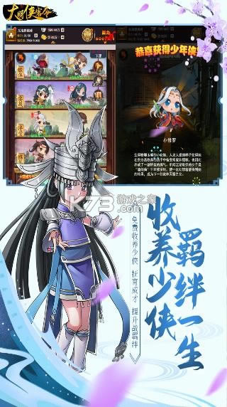 采用Q版的角色设定有游戏风格进行展现!玩家在游戏中经历各种事件成为惩奸除恶的大侠