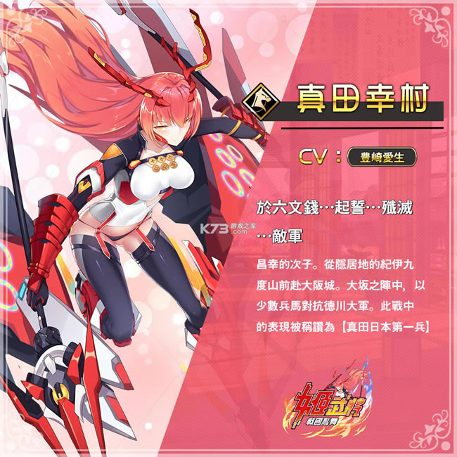 战国武将化身美少女,力与美完美结合。以日本战国著名武将为原型,结合武将们的外貌与性格特点,创作出姐姐系/萝莉/傲娇/女王大人/腹黑等不同类型的美少女角色;另一方面,我们在技能设计上,也融合了武将们的特征。如此严谨的角色设计,这正是游戏的一大特色