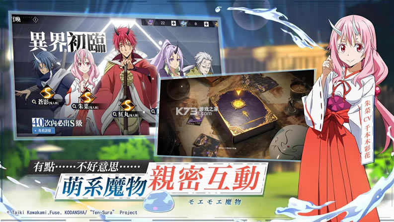 故事中将会联同莉姆露、红丸、苍影以及岚牙等人气角色同行,透过转生x史莱姆x建国x RPG的元素,在手机游戏平台上,享受一趟热闹又状大的冒险之旅。