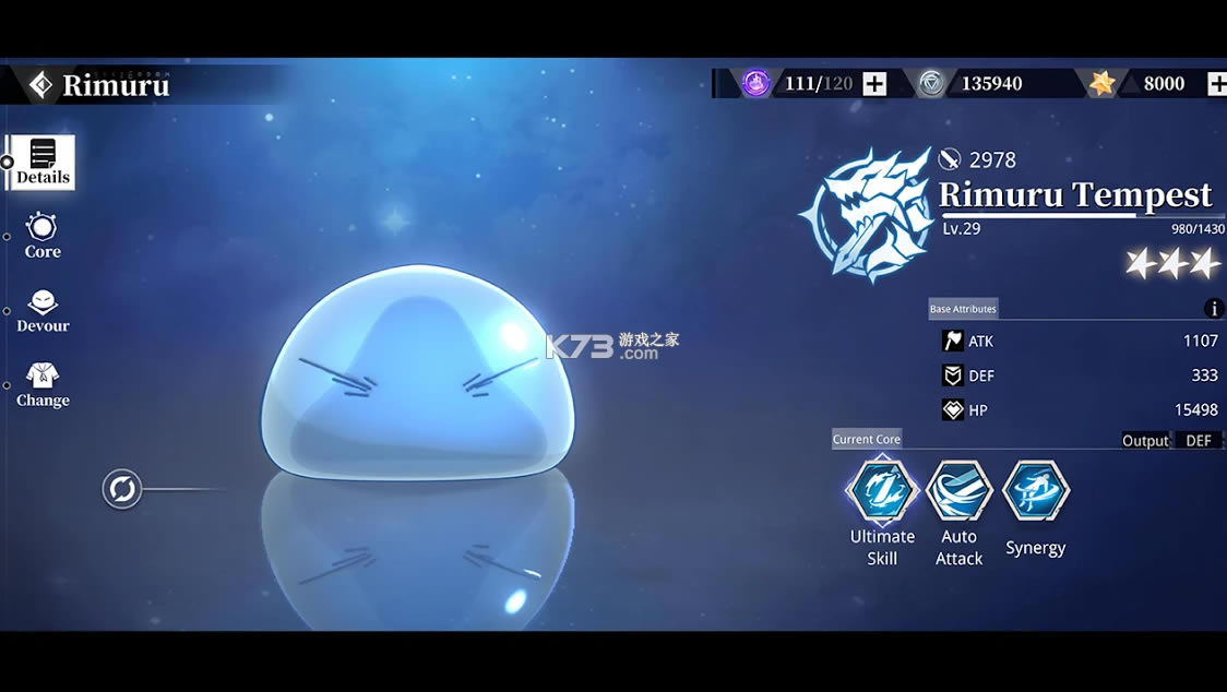 《关于我转生变成史莱姆这档事:魔物之王》,动画正版授权,100%还原原著剧情,原班声优列表。游戏通过3D卡通渲染技术,为您完美还原精彩纷呈的异次元幻想世界。游戏玩法以策略性、队伍搭配为主,玩家可通过主线剧情关卡、秘境、讨伐等丰富的玩法,收集并养成强力的角色和装备。并通过发挥主角利姆鲁的“吞噬者”特性,自由构建、切换“利姆鲁”形态、特性,养成自己专属的利姆鲁。