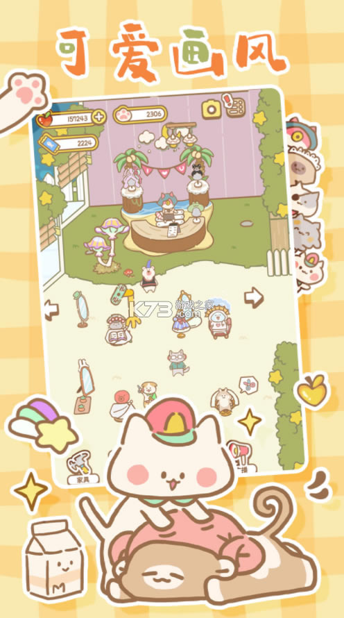 3、激萌无限的养成玩法,治愈系的游戏画风,解锁超多品种的猫咪。