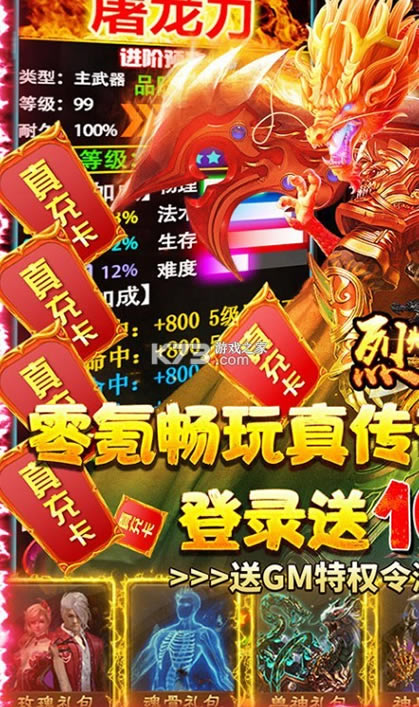 每日登录免费再送真充卡,无限领取!副本通关大量爆充值卡,走到哪爆到哪!零氪玩家的真爱传奇!在这款游戏里你能体验到英雄的铁血柔情,谁说传奇故事只有血洒疆土?