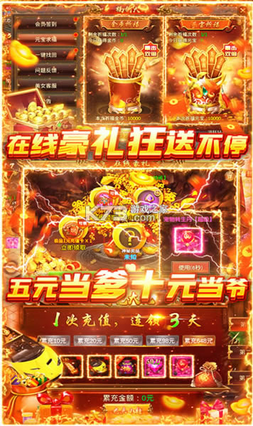 ★做主线送神将关羽,极速升千级,免费签到送超级装备和宝藏钥匙!