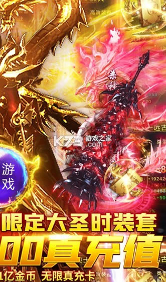 ★上线即送vip15、元宝88888、金币10000w,绝版情人节大圣限定时装套