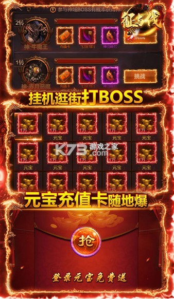 3.支持跨服对局和跨服挑战,全民boss火热袭来,打败即可获得大量元宝和装备;