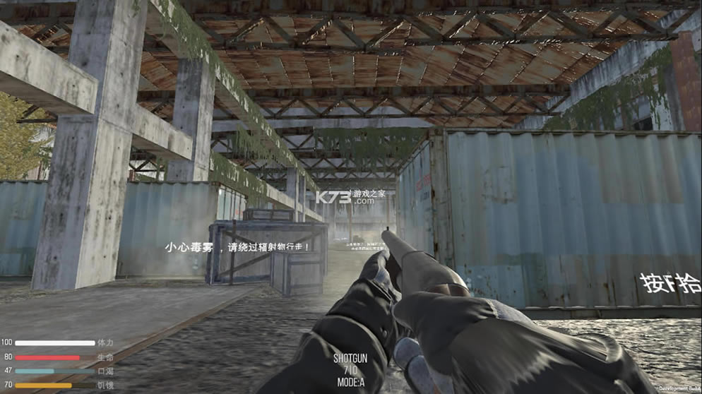 2.添加了背包系统,15种枪械,食物系统,可以建造帐篷和篝火过夜!