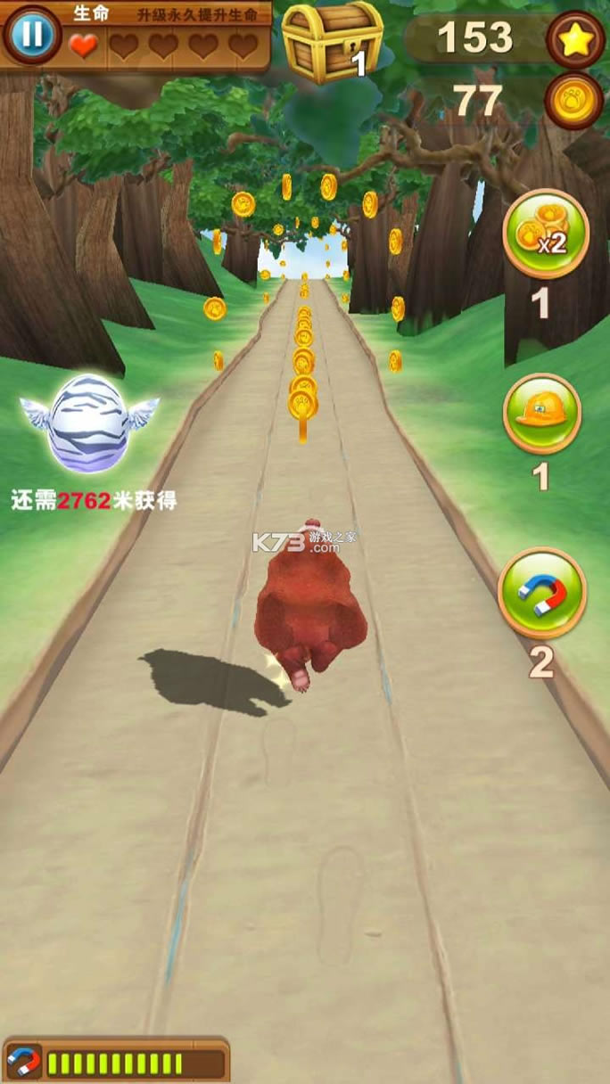 好玩的跑酷游戏,这个夏天与你激情相约!全新版本中游戏界面得到全面优化,告别繁琐操作,跑酷萌萌哒!全球总下载量已破两亿,原版配音倾情献声,完美还原3D高清场景,人物形象精美绝伦,更有千元土豪大奖等你来拿!游戏中你可以自由搭配熊大、熊二的装扮,协助他们摆脱光头强的追击,还有可爱犀利的萌宠助阵
