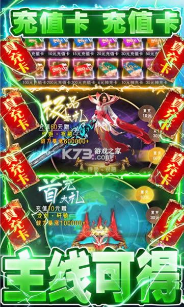 ★上线赠送至尊10,元宝18888,铜币999w,千元充值卡包,称号:无限送充值