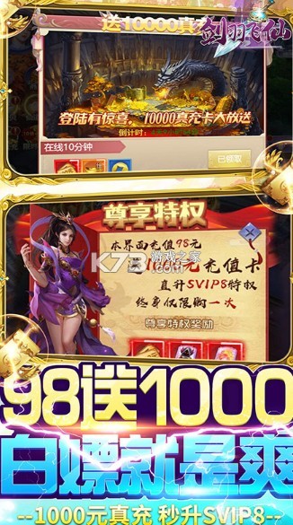 4、尊享特权98送1000元,直升SVIP8特权,帝品灵宠、仙皇神翼任意领!