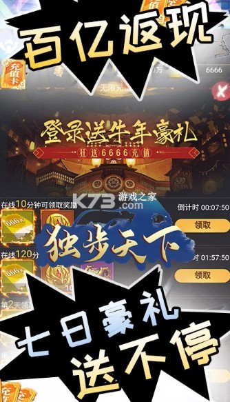①登录送牛年豪礼,每日在线狂送6666元充值卡!