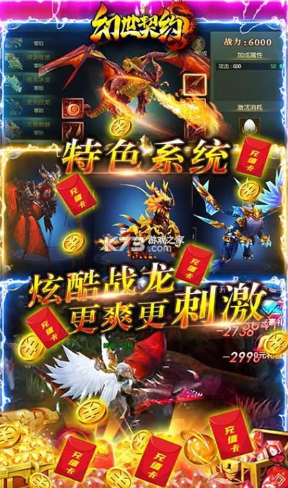 战龙变身、骑宠助战、天神降临等各类玩法层出不穷,同时拥有华丽转职、智能挂机、实时语音、自由交易等多种开放式玩法,副本、活动、干BOSS!