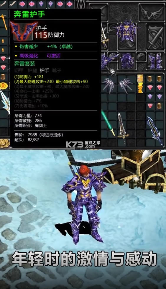 高度还原经典传奇玩法,游戏将MMO与RPG再次融合,进入游戏玩家将选择不同的职业:法师、战士、剑士每位英雄都怀有不同的特技。玩家的出身地随便分配学习什么武学完全要看你出身在哪里,通过不断地练习你将变得越来越强大,和兄弟一起约战沙城免费装备秒回收,到账元宝十连抽,一直玩一直爽!