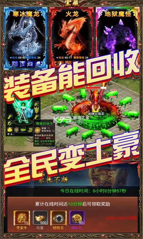 5、刷boss狂掉元宝,多余装备一键回收得海量资源!