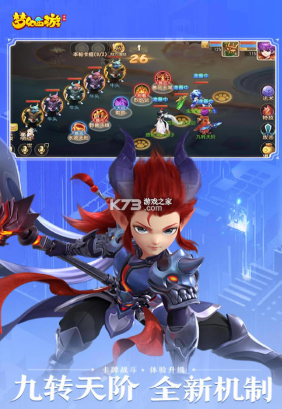 4、游戏使用Q版的画风进行整个画面的渲染让游戏战斗画面更加有趣,打造了一个充满趣味的西游世界。
