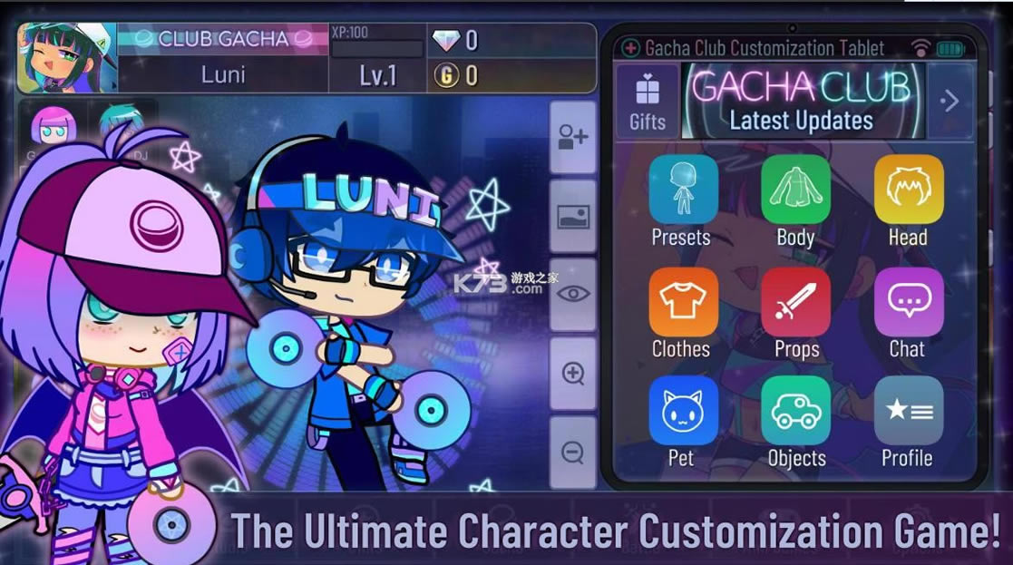 《嘎查俱乐部(Gacha Club)》开启动漫的游戏风格,不同的武器和发型来袭,建立所有的场景,添加说喜爱的游戏背景,包含了各种不同的模式,收集宝石和材料,玩你自己说喜爱的迷你游戏,开启你的新的冒险。
