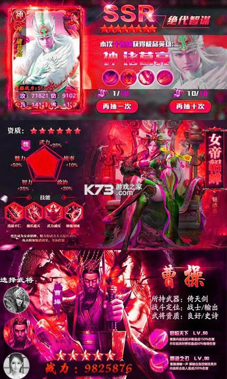 百变阵容随心搭配,更有丰富PVP玩法等你来挑战,更以副本、活动玩法,感受原汁原味的三国剧情,更可一键挂机,上阵武将组合对战,玩法烧脑策略又具挑战性,还等什么?赶紧来下载试玩吧,