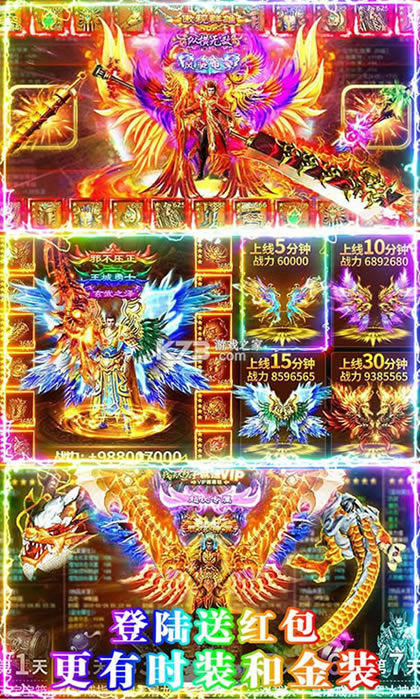 开局领取至尊VIP10、豪华VIP12,100元代金券,金币*1000W!累计登陆再送合计400元代金券!100元代金券使用秒赠10万元宝,激活无限道尊特权、无限法王特权,尊享无限金币、无限强化特权!