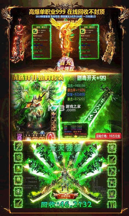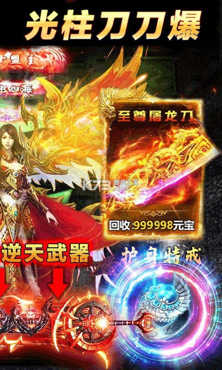 ★进游戏就送元宝终身卡,每天领取海量元宝!挂机经验金币急速提升!每日怒刷极品BOSS,神装等级遥遥领先!背包容量超级扩大,离线挂机不用愁!真金白银送你爽上天!