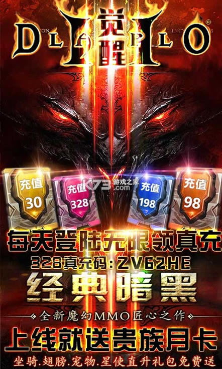 《暗黑觉醒送328R真充》真实的打击感,呆萌的游戏分各个,激动人心的游戏乐趣,各种各样的游戏怪物来袭,拥有非常多的游戏奖励,完成更加艰难的任务,得到最丰厚的财保,摧毁水晶获得胜利。