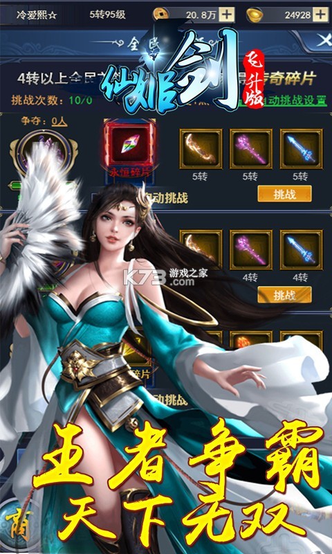 你可以成为一个争霸的首领,神装加身,指挥团队,跨服出征,丰富的PVP玩法将为你提供无限乐趣;《仙姬剑飞升版》是一款以畅快战斗为核心的RPG手游,让你在仙魔乱舞的世界中,体验一场无差别的畅快激战。