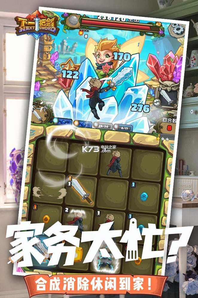 《下一把剑》以合成消除为玩法基础,结合了西方魔幻冒险题材和RPG技能养成要素,小手一划,合成秒杀,一名追寻宝藏的冒险者,在许久前踏上了这篇神秘的大陆,在这里,一人一剑,意外获取了冰火元素的加持,在不断战斗中掌控了让自己和宝剑升级的技巧,在挑战恶龙的过程中不断变强,剑起风云卷,一刃斩妖魔!