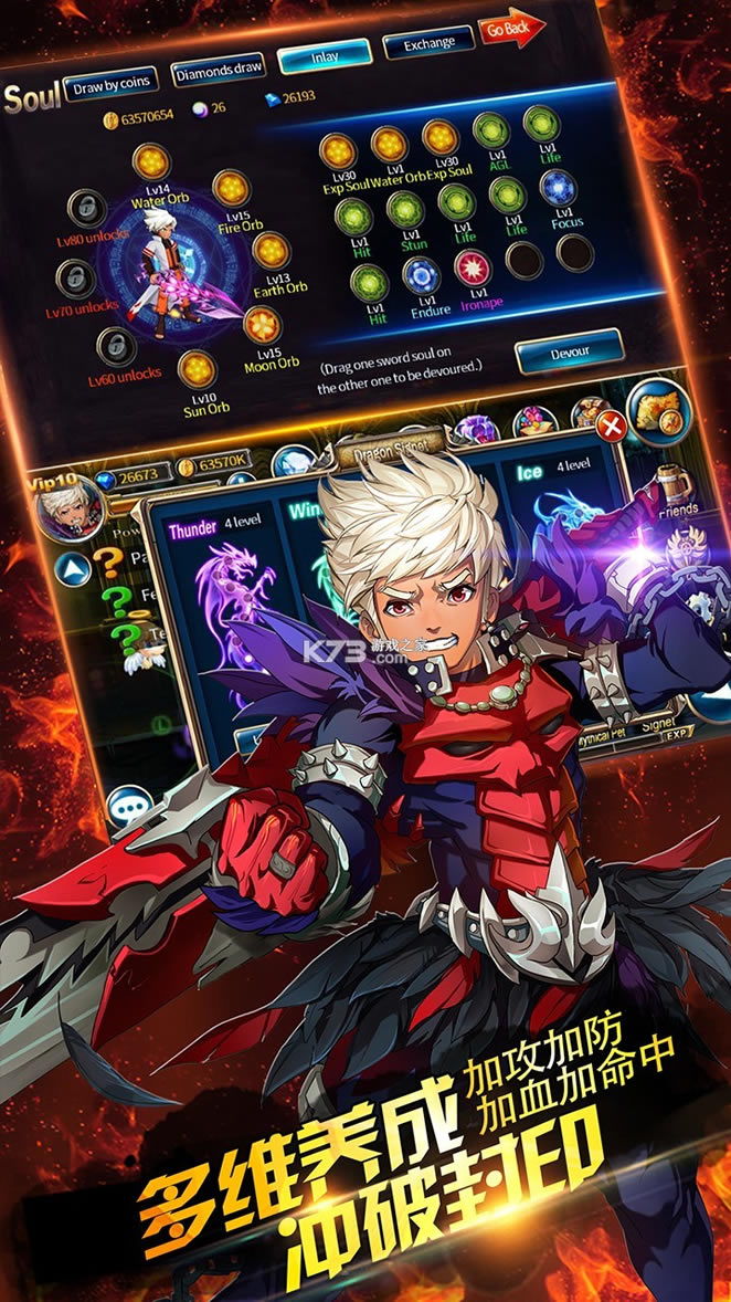 少年热血幻想无限,海量多人活动,一起穿越异世界拯救世界!联合众基友们击退巨兽维护世界和平,更有机会获取珍惜道具稀世神兵哦~