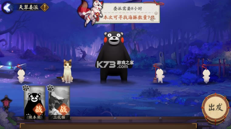 活动开启时,阴阳师们可由庭院小纸人或现世妖约进入熊本奇遇活动,登上前往熊本熊的故乡——熊本县的飞机。熊本熊将带领到达的阴阳师探索体验阿苏烧烤、天草寻海豚以及在熊本城植树。