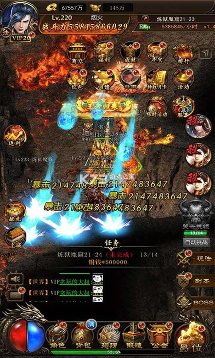 经典的场景战斗,万人攻沙的PK大战。内设独特BOSS系统,和兄弟一起打BOSS,超高爆率、疯狂收割的快感,让你不再为装备和资源发愁!