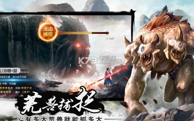 《异兽吞天记》洪荒的战斗背景,在这里去干掉各种异兽,让自己的人物更强,丰富的角色,各种类型的职业,还有多种游戏模式都是可以选择的,干掉这里的魔兽,成为最强的战斗者.