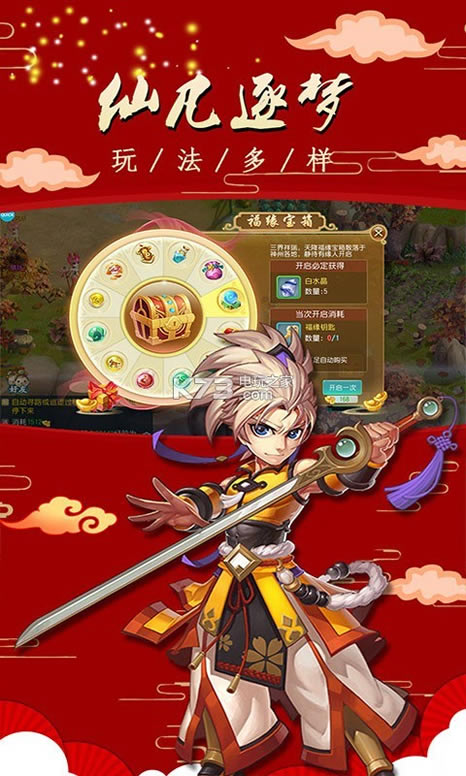 融合日式与国风的美术特色,将传统仙侠神话题材与潮流Q萌风格完美结合;游戏采用经典而独具特色的回合制战斗模式;