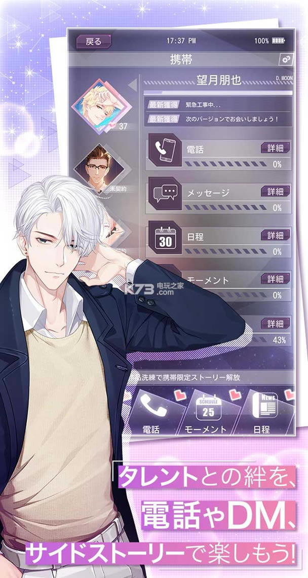 《Moon&Star(月亮和星星)》恋爱育成的明星偶像游戏,完成管理的工作,释放你的才华,人才的关系处理更出色,了解情人你的故事,加深更多的联系,得到更多的天赋,推进更多的方案合同。