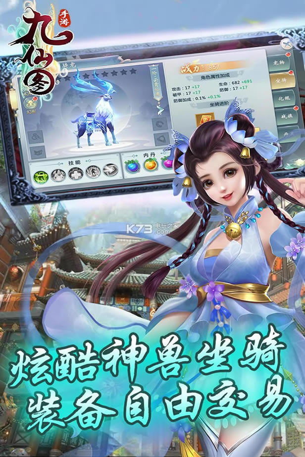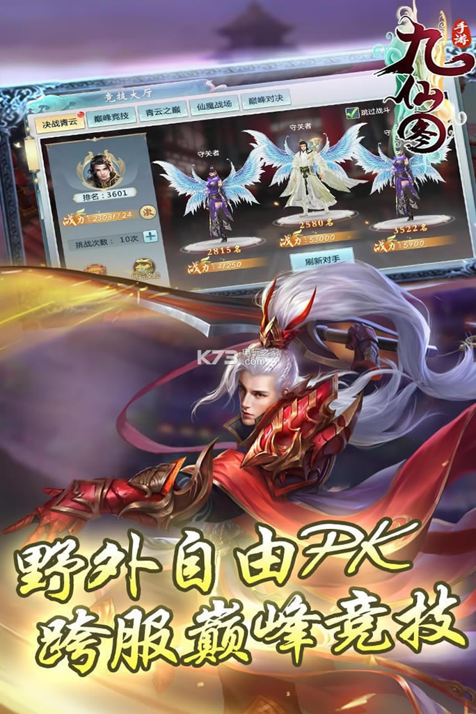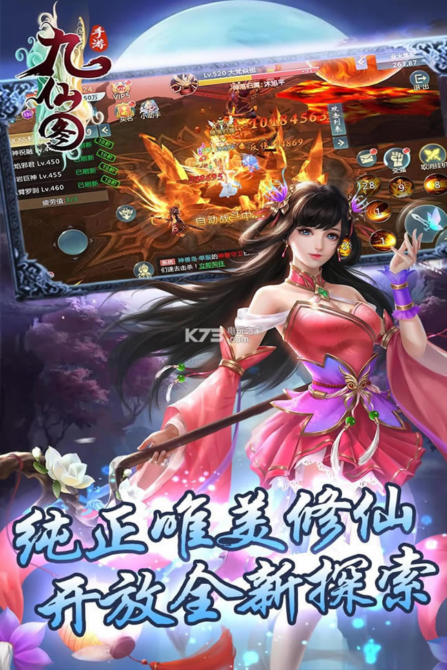 2020剑侠修仙3DMMORPG国风大作《九仙图》震撼来袭。全新开放式地图,3D全视角操作,自由探索仙侠世界。万人集结,战斗不息。热血挂机,凡人修仙,远征江湖。跨服巅峰竞技,梦幻与震撼人心的武侠帮会PK。情侣恋爱结缘,二人相伴,浪迹天涯。百变外观,时装随心搭配。游戏还独创诛仙化神、战印伏羲、仙魂仙陵、天书天神、神兽坐骑等特色系统。奇侠问道江湖,混世九州等你来战。