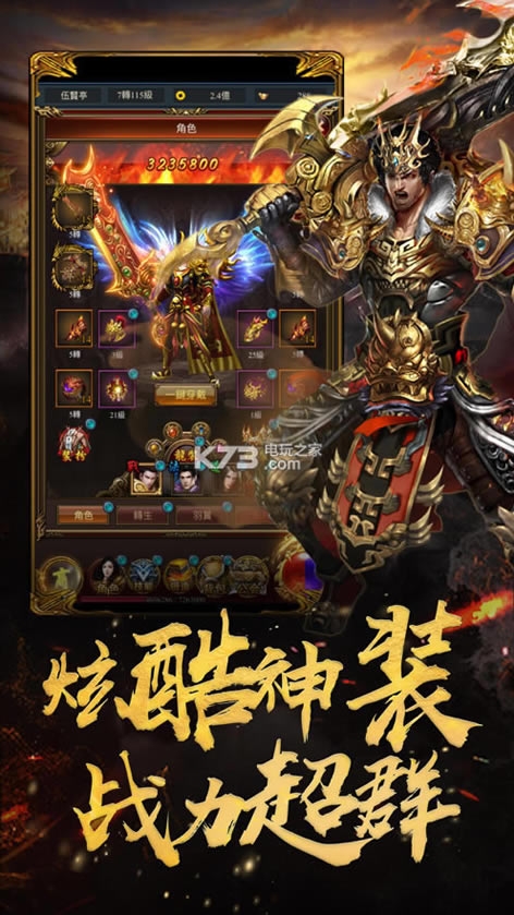 游戏中继承端游经典传奇的各式套装,彰显王者属性,霸气属性让你统领战场!神兽坐骑助你一臂之力!独有坐骑系统让你驰聘沙场!酷炫羽翼引领潮流时代!酷炫拉风回头率满满!