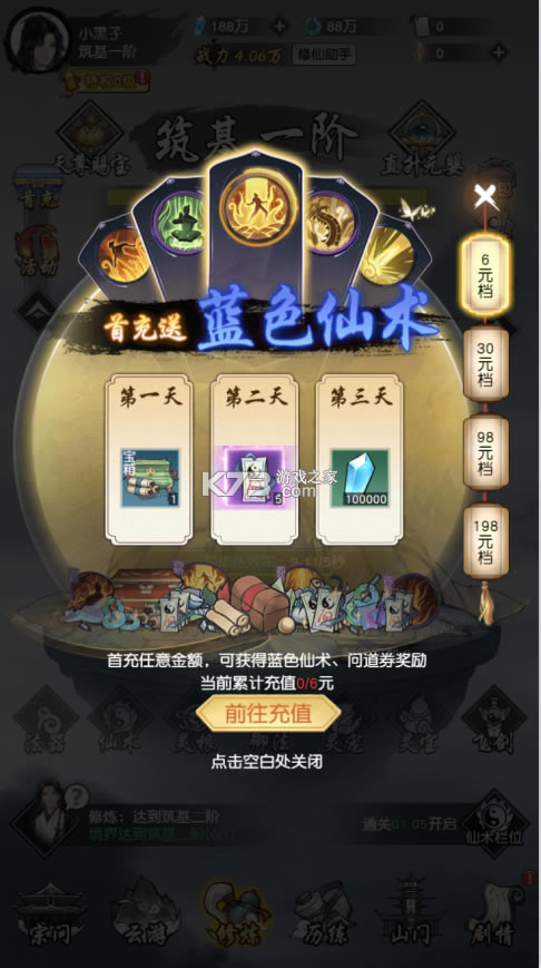 ★副本推图可获得真充卡,使用后可获得仙玉与累充进度;