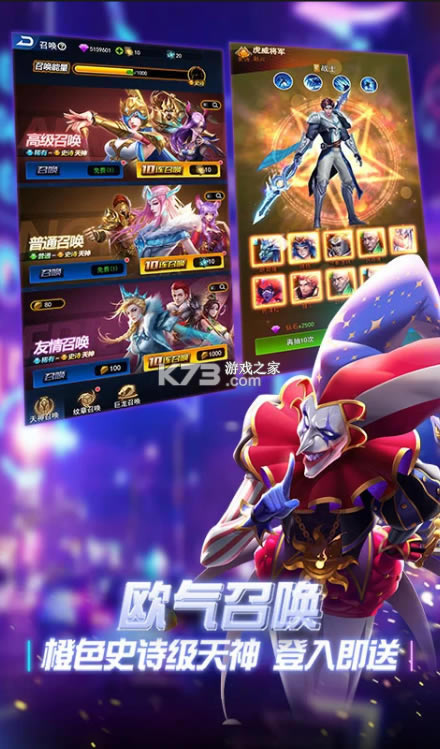 4.近百位天神任意指使,上至元始天尊,下至冥王哈迪斯。丰满如猪八戒,妖艳如埃及艳后。更有传奇英雄花木兰、三国武圣关羽、西游记齐天大圣孙悟空等,埃及、希腊、北欧、中华各神系天神共同参战。融仙侠、奇幻、魔幻于一体。