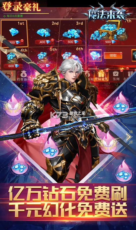新手礼包:金钻*8888,强化石*400,4级宝石箱*1