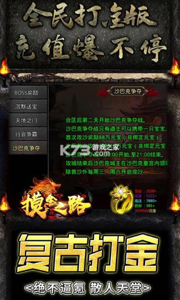 《摸金之路》是一款经典复古的传奇手游,上线登录就可以获取海量的福利助力玩家,多种不同职业的选择决定了你以后的道路,每一个职业都有自己的特性,在这里所有的装备都是随机掉的,也可以玩家之间自由交易。