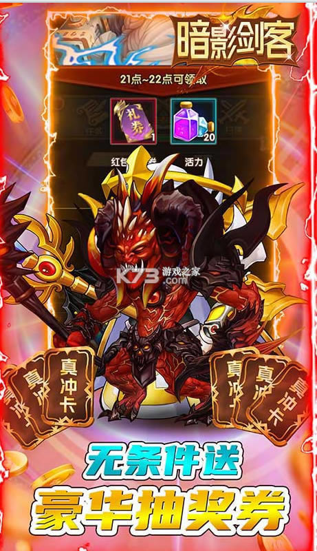 《暗影剑客》作为一款二次元全明星题材的混战放置挂机手游,每天上线签到送30元真充卡,GM等级不付费飞升,更有0元购商店超值物品不付费拿很多我们熟知的人物们都将在这款手游之中登场,一起解锁全新的冒险,中毒魔性十足的剧情设定,最新笑点不断给你超多欢乐超夸张的技能释放特效更可以亮瞎你的眼睛。