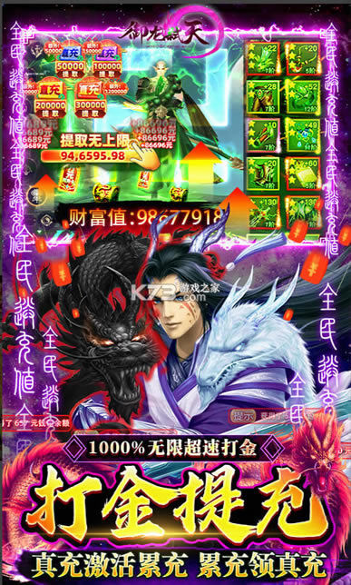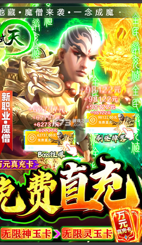 ★免费送首充领GM武器,挂机即可刷满直充币,激活神尊卡天天免费送至少500元真实充值。天天在线送巨量寻宝令,无限抽取真充和极品装备!
