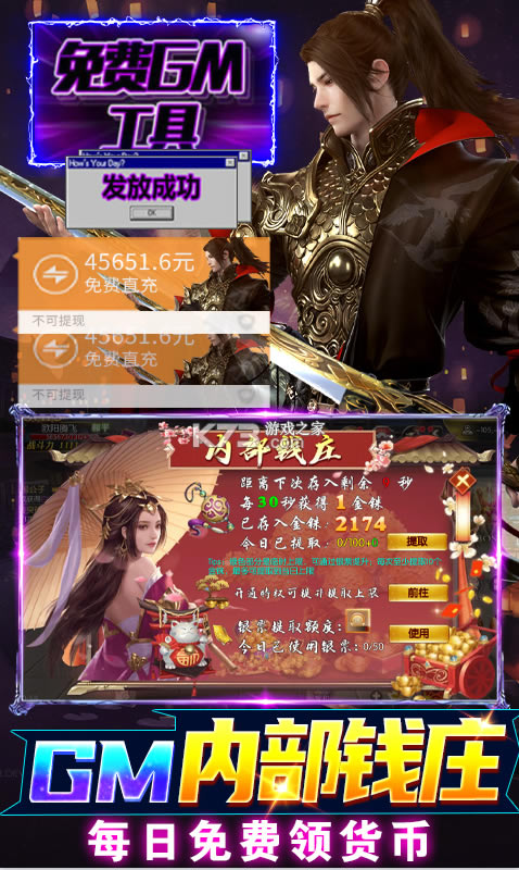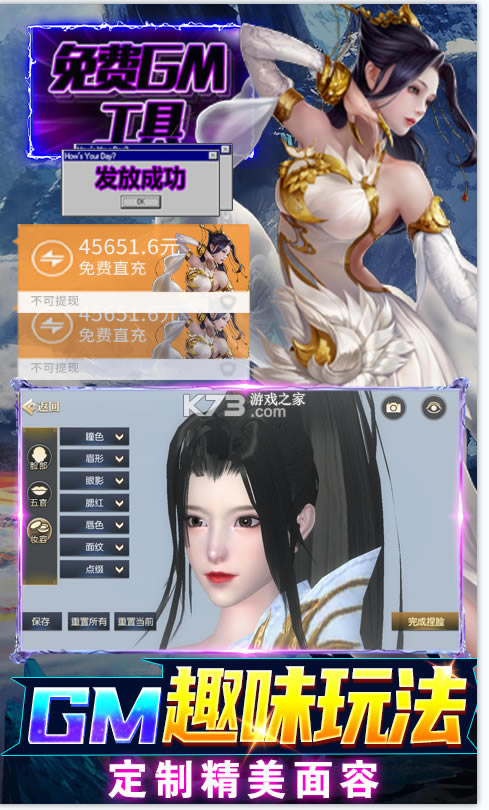 1、GM调试特权,可自由发放道具、时装幻化、材料等