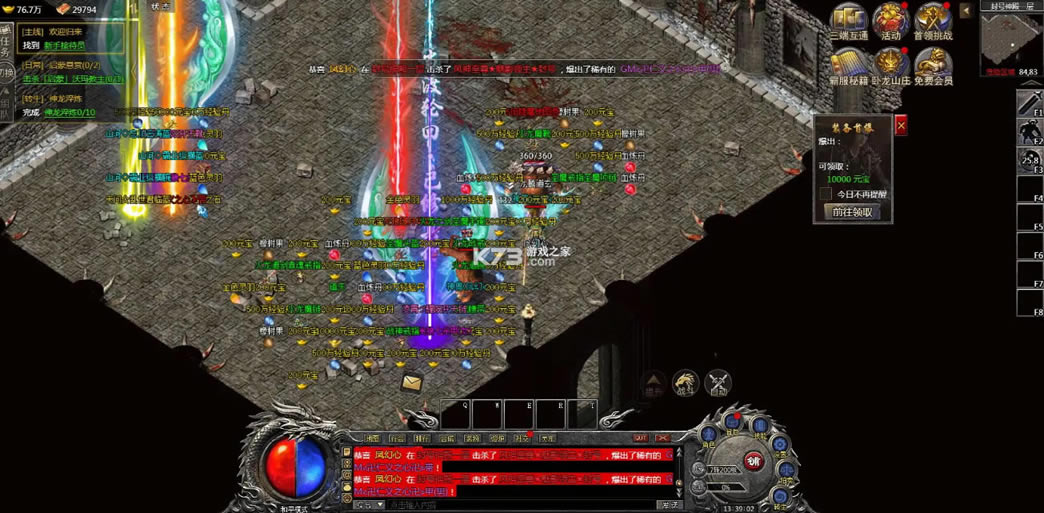 游戏中包括卫道除魔任务、守护英雄经验副本可以获得大量经验,还可以通过回收装备、探宝、城主贺寿、土城烤火等每日活动获得大量经验收益。