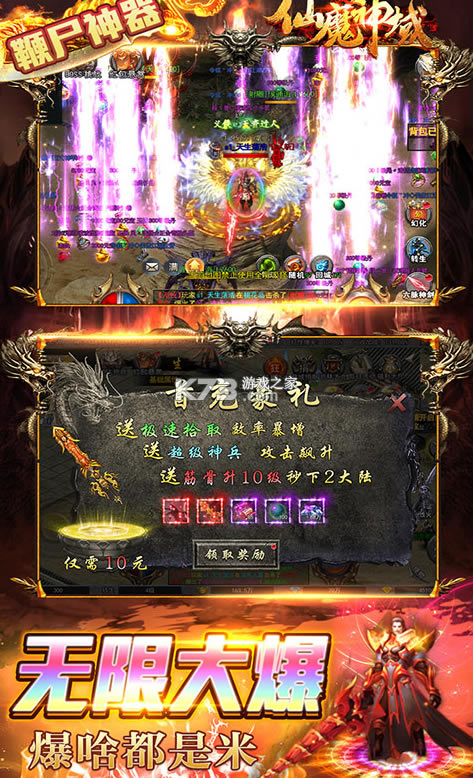 在仙魔神域游戏中,PK才是永恒的主题,三大职业,简化操作,让玩家畅享即时PK的激情。游戏的伙伴系统还能让你体验三大职业的全部魅力,全民BOSS,PK战,天门争霸,矿场资源,多种系统玩法带你领略PK的快感,千人同屏大开杀戒,更高的爆率爆装,向其他玩家发起挑战,让你一夜之间身价百万。
