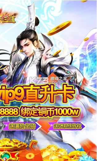 1、游戏上线送vip9直升卡,1w充值卡包,绑定元宝8888,绑定铜币1000w;