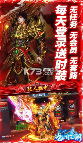 《九州王朝》丰富多变的玩法,无会员vip和无任务的挑战,这里的装备全部都靠你来打,超多返利的活动一起合力去击杀,享受激情的游戏对决,所有的装备都不浪费,爆率全开公平公正的挑战。