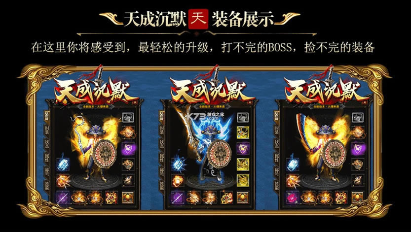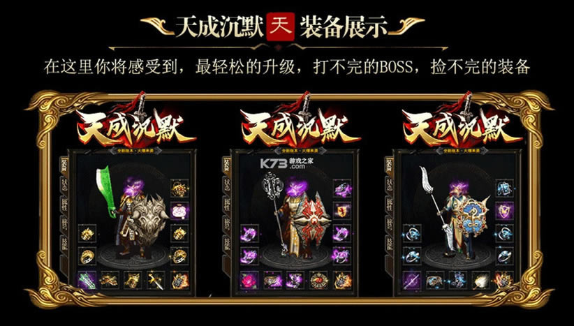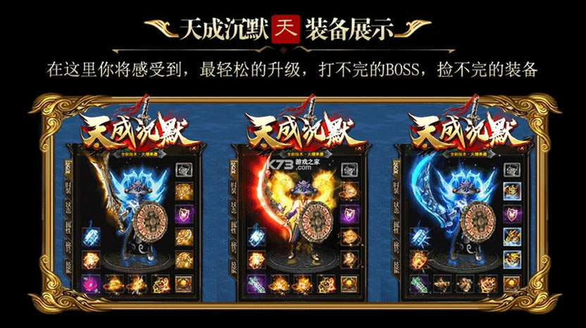 天成沉默官方版是一款能够给玩家带来沉默传奇玩法的手机游戏,在这里拥有全新的装备系统,还有着独特的成长神器可以在游戏里获得,不断的提高角色的战斗能力,从容应对游戏里的种种挑战,不断的变强,这样才能够无惧任何挑战,成为沙城霸主。